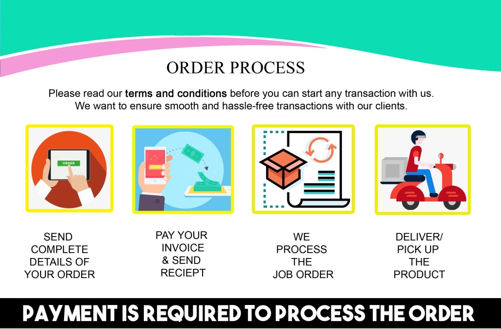 Please read our terms and conditions before you can start any transaction with us. We want to ensure smooth and hassle-free transactions with our clients. Please read our guidelines; First, submit order form once your orders are final. Please send a complete details: